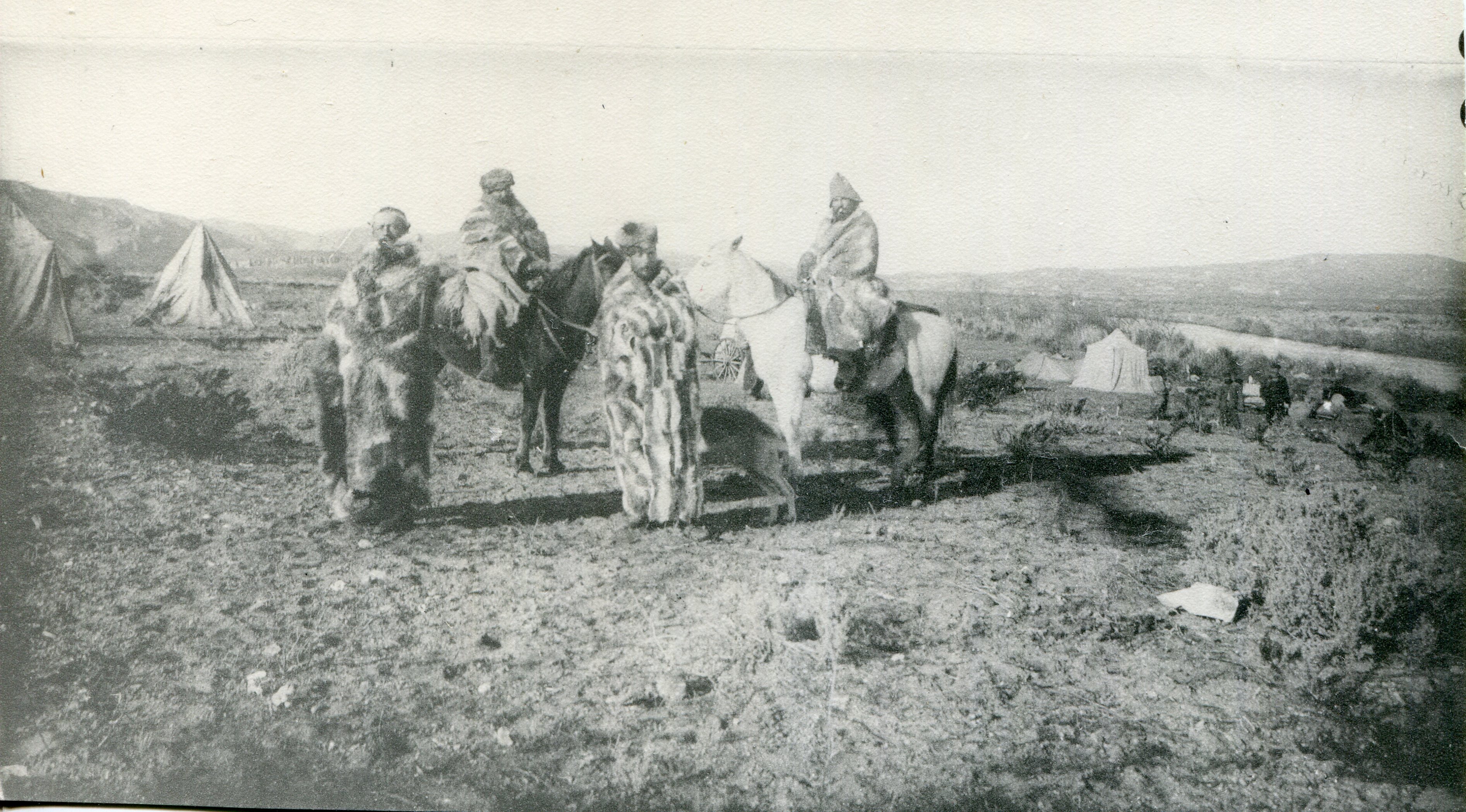 Integrantes de la comisión Argentina de Límites con Chile vestidos con quillangos.