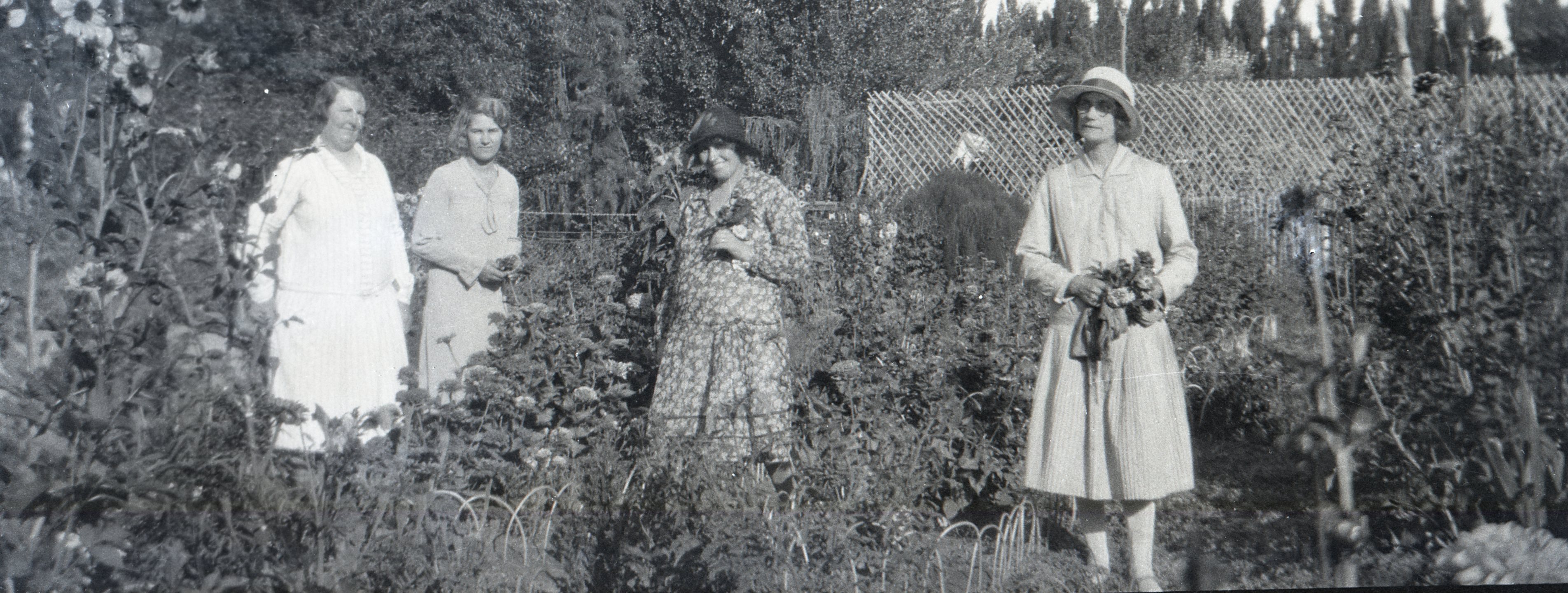 Isabel Ana Roberts (izquierda) junto a su hija mayor María Luisa en la chacra familiar de Trelew, Valle Inferior del Río Chubut.