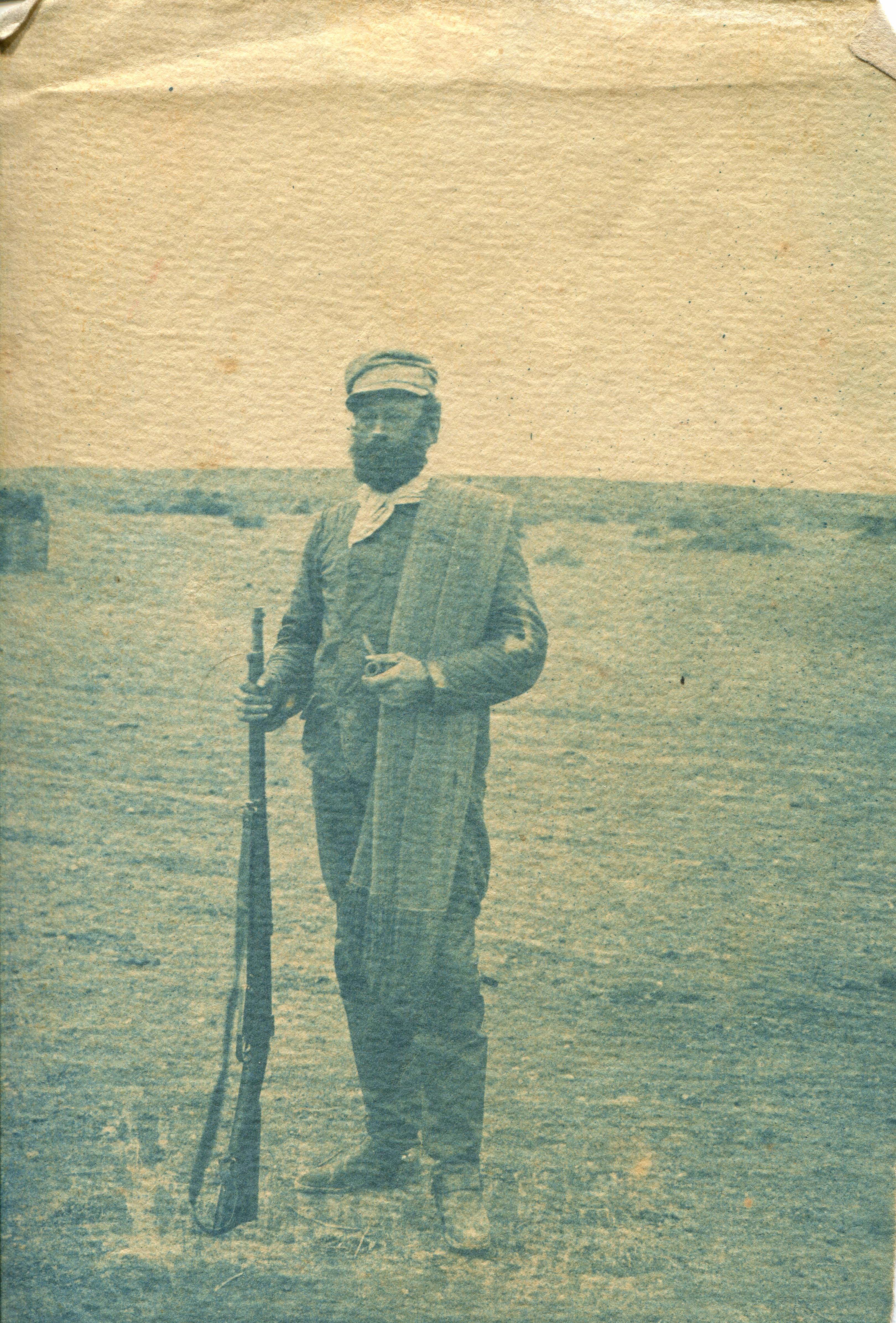 Hombre posando con rifle